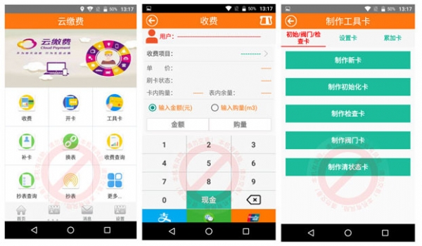 产品功能:1.可实现移动便捷的收取水电费;2.可实现用户卡补卡功能;3.可实现制作工具卡功能;4.可实换表功能;5.支付方式支持微信支付,支付宝支付和银联支付;6.可实现打印。